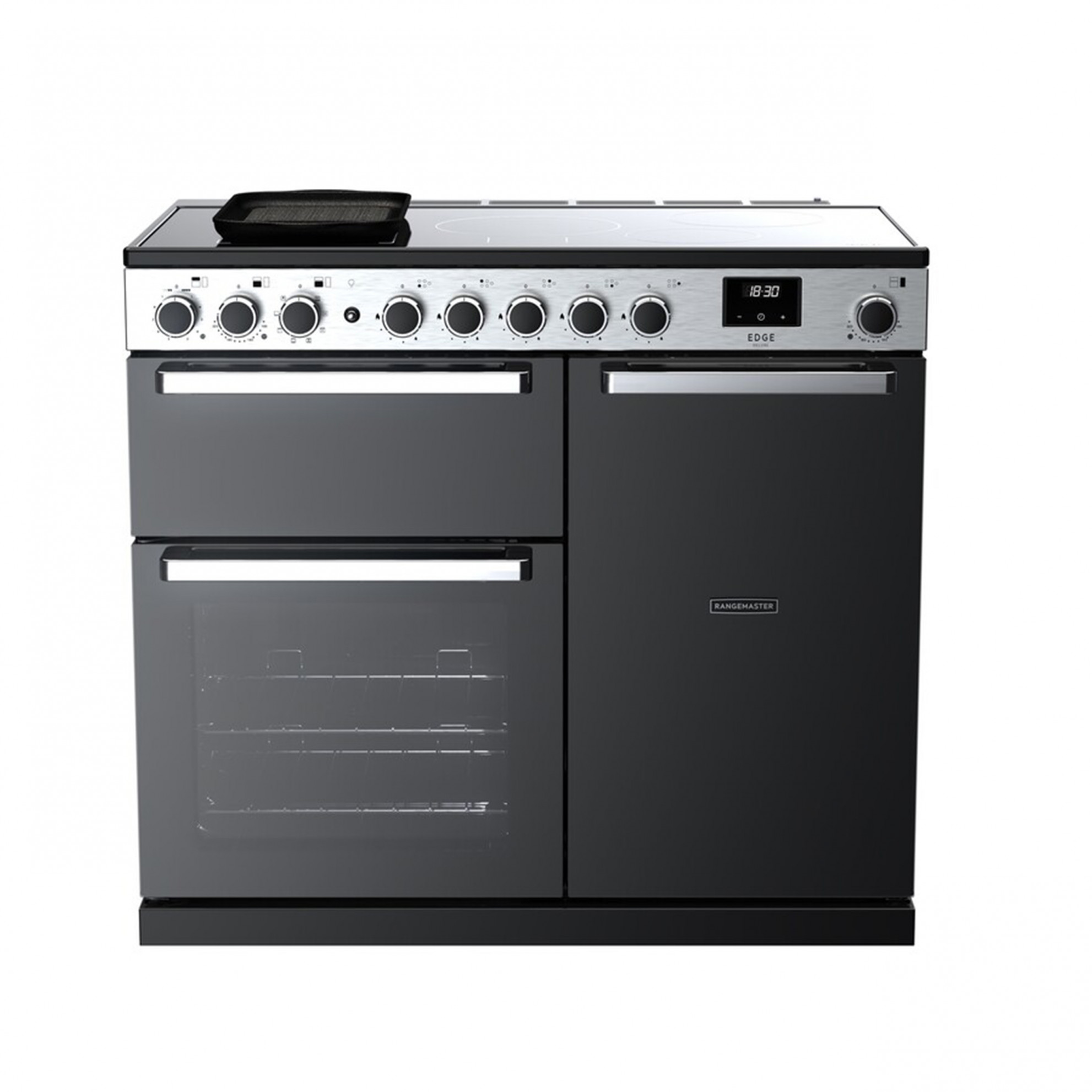 The Rangemaster Edge Deluxe is sleek, frameless, and effortlessly refined, the Edge Deluxe brings a bold black glass finish to the heart of the modern kitchen. Its clean lines and minimalist design make a striking statement. Available in three sizes and two fuel options, the Edge Deluxe combines timeless style with everyday performance.