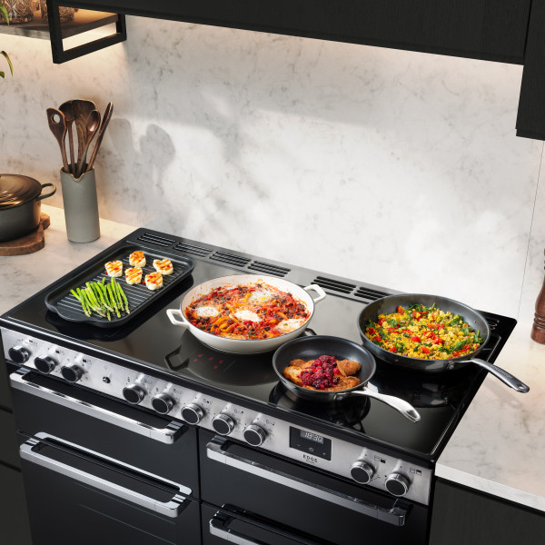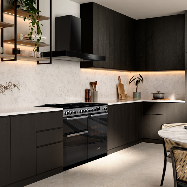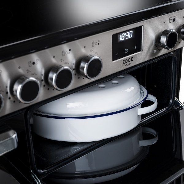 Sleek, frameless, and effortlessly refined, the Edge Deluxe brings a bold black glass finish to the heart of the modern kitchen. Its clean lines and minimalist design make a striking statement, while still delivering the full versatility of a traditional range cooker.